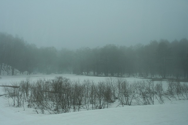 黒姫以降、妙高高原が近づくと、一面の雪景色。高原ならではの風景が続きます。