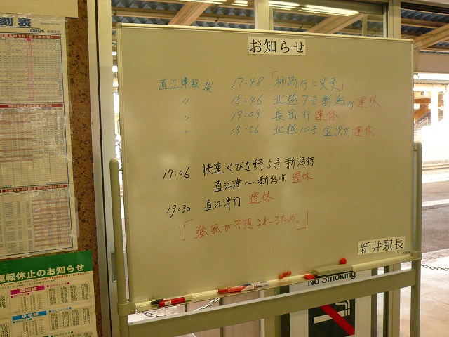 強風が見込まれるということで、沿岸部の信越線が運休、「くびきの」も直江津までに短縮されてしまいました・・。