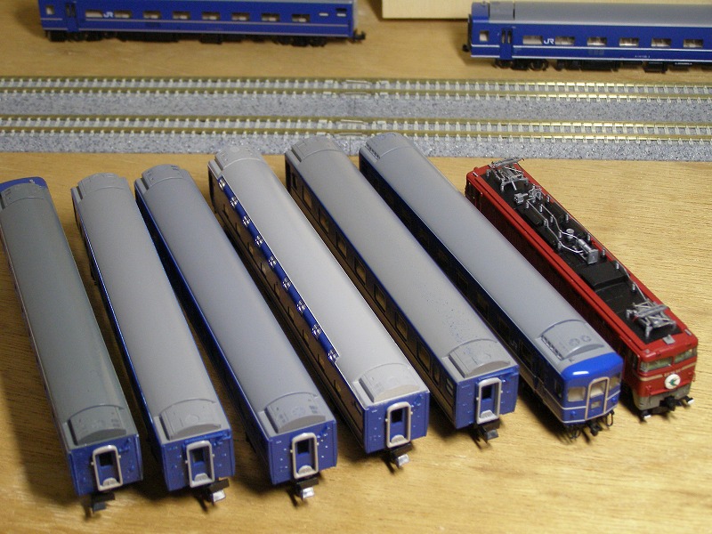 TOMIXのオハネ15を手に入れるのは諦め、KATOオハネ25を転用、白帯化しています。
