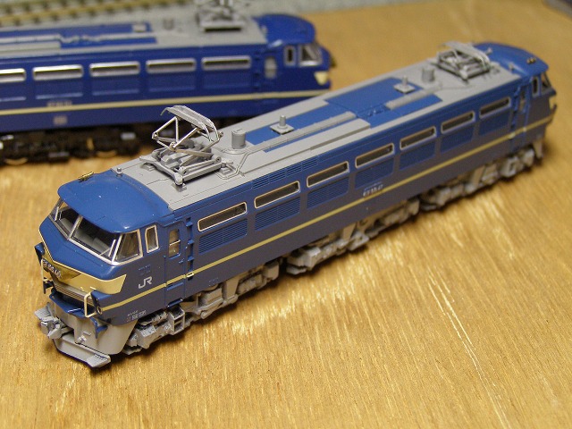 ブルトレの3両セット付属の製品で、「初心者向け」と銘打って、手すりなし、ナンバー固定、金属パンタ、一体成形の列車無線・ホイッスルなど、いわば価格を抑えるための手抜き製品です。
