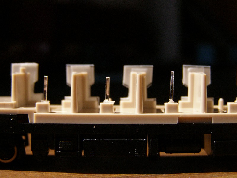 ダミーカプラー装備車にのみ取り付け、台車と干渉しないギリギリの所に2本接着しました。