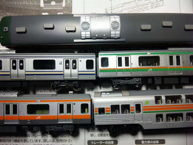 全体として残念なのが、銀色の荒さ。店で見たときは許容範囲って感じだったんですが、実際KATOのE231と比べるとその荒さが際立って見え、ちょっといまいち・・。