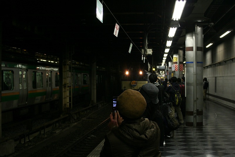 しばらく待ってると推進回送で13番線に入ってきました。ファンから一般の人まで、ギャラリーはごらんの通り。