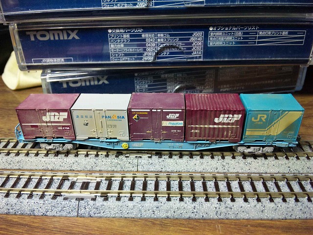 ちなみに一番左のコンテナは、一部にマスキングを施して汚し、実写に見られるパッチワーク上の感じをちょっと出してみました。