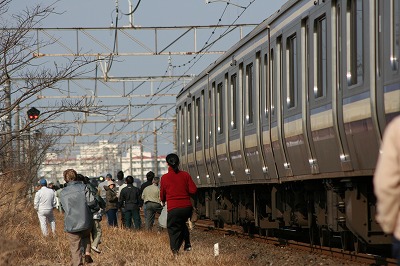 これ、以前千葉でSLが走ったときのことですが、やはり撮影者が列車を止めてしまった時のことです。手前に写ってるのが止まった列車。