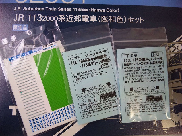 今日帰りに寄り道して、種車の阪和113系とか、パーツ類を調達してきました。